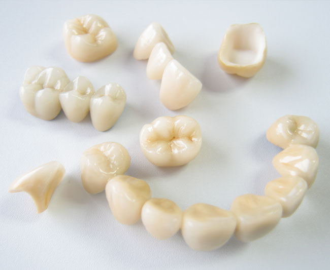 - keramické můstky - zhotovené z keramických korunek (viz keramické korunky)