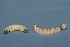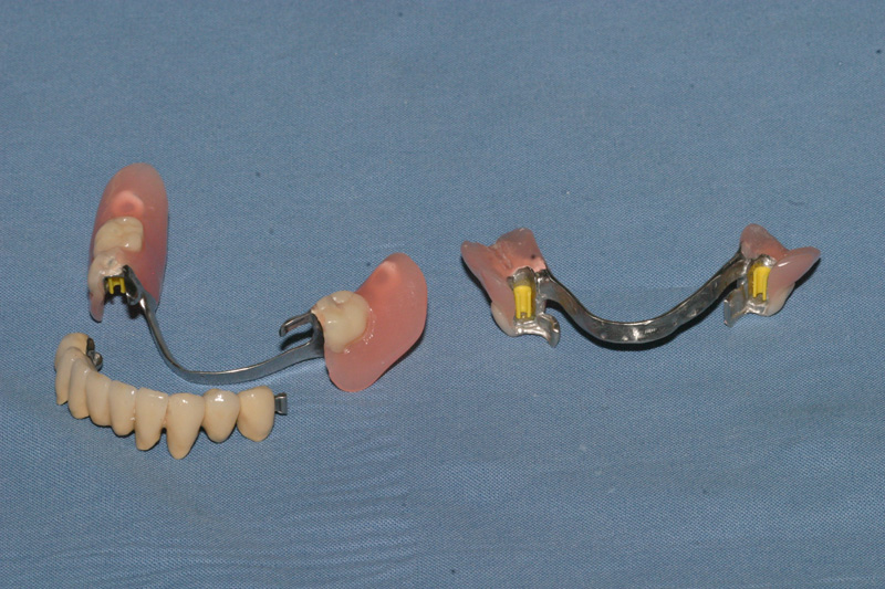 - Částečné - nahrazují větší počet ztracených zubů a jsou připevněny ke zbývajícím zubům pomocí